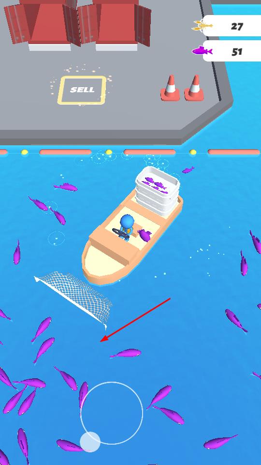 3、在养殖场景中,点击成熟的鱼类进行捕捉操作,将捕捉到的鱼出售换取资金,同时留意水域承载量,合理规划养殖与捕捉的节奏。