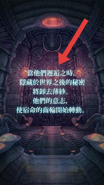 2、过场界面呈现世界观文案(“當他們邂逅之時…宿命齒輪轉動”),浏览后进入后续流程,理解背景提升沉浸感。