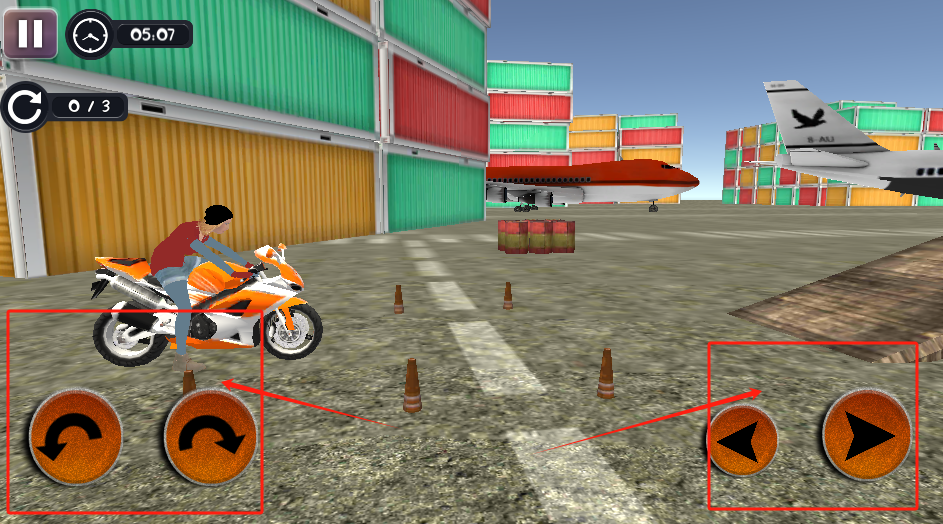 3、骑橙色摩托在机场跑道比赛,用下面左右箭头控制方向,要收集3个SAU道具。