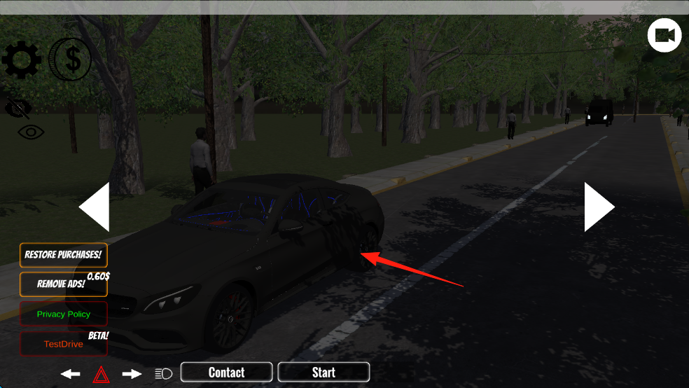 2、选择车辆后点击“Start”,在道路场景驾驶,通过虚拟按键操控方向和速度,体验驾驶。