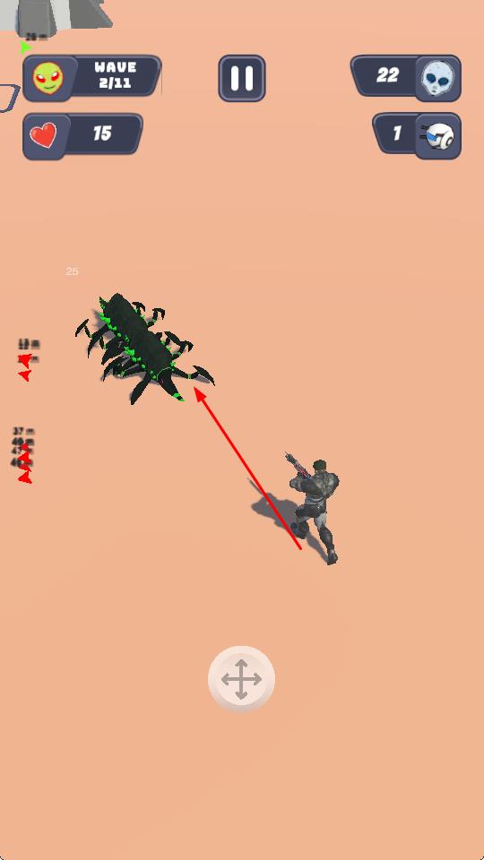 3、持续击败各波次怪物(如外星生物、巨型毒虫),存活到最后一波,完成关卡挑战,推进游戏。