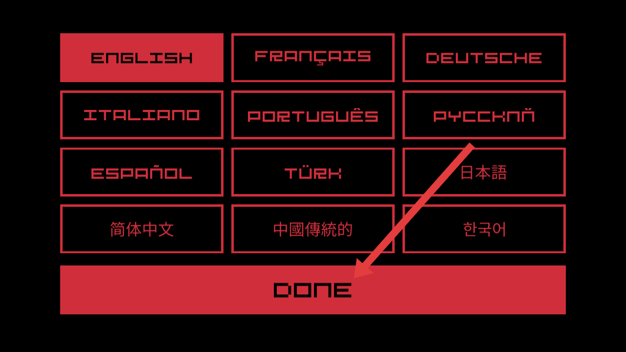 1、进入语言选择界面,点击【简体中文】,再按下方【DONE】确认,切换为中文界面便于理解游戏。