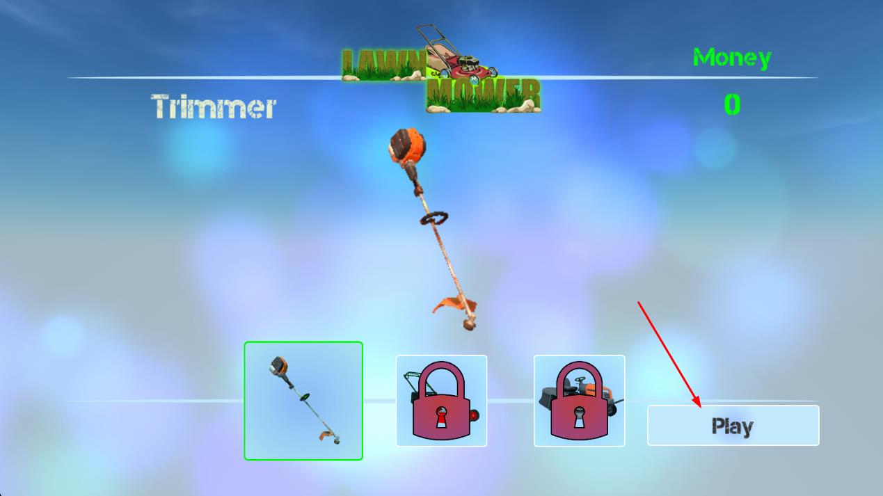 1、进入游戏后查看庭院草坪状态,选择适配草高的割草机,调节刀盘高度并检查燃油状态后启动设备。