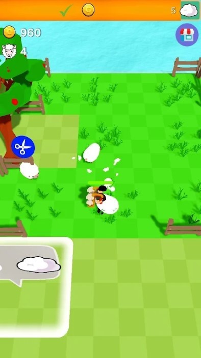 3、在养殖区域中,点击成熟绵羊进行羊毛收割,收集资源用于扩建场地,同时留意绵羊生长周期,合理规划收割时机。