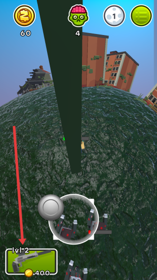 3、推进至“lvl-2”地图(箭头指向),解锁新区域,应对剩余“4”只僵尸,升级武器或建筑,强化防御,完成关卡。