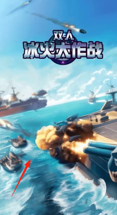 1、进入战斗在游戏封面界面,按照箭头方向,点击海面船只附近区域,进入游戏。