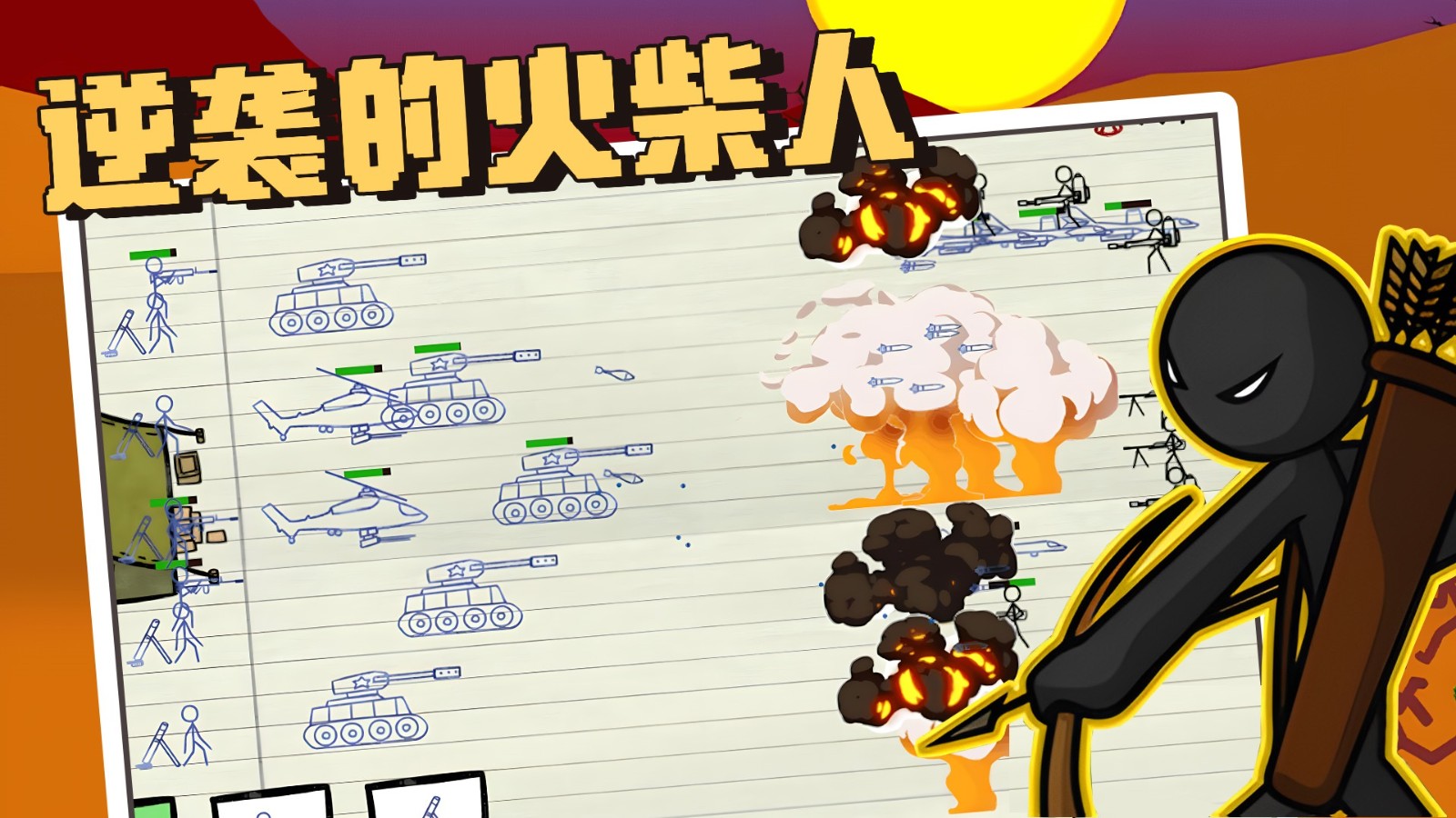 - 逆袭的火柴人是一款极具吸引力的益智休闲即时战略游戏,以简约清新的火柴人风格为基调,融合策略与战斗元素,玩家将招募各类火柴人士兵,组建强大军团,在
