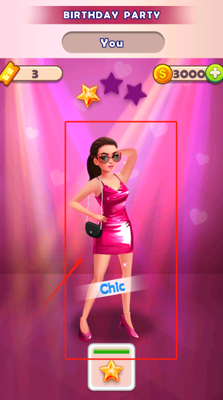 2、看女孩穿好了粉色裙子,点底下白色星星按钮完成搭配,风格选Chic。