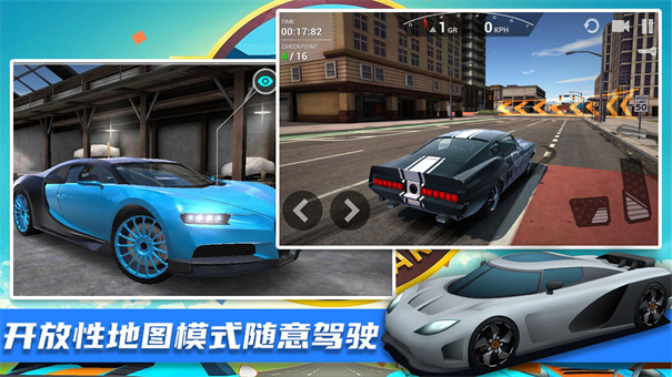 1、选开放地图模式,驾驶布加迪等超跑,在城市街道随意开,熟悉真实操控(油门、转向),探索场景,完成漫游。