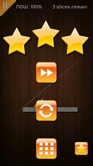 1、手指在屏幕上滑动,沿预想轨迹切开目标区域的木块,确保切割次数用到极致,剩余刀数少时需思考最优路径。