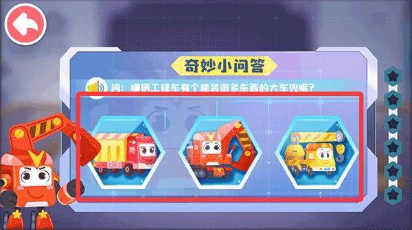 4、寓教于乐的结构设定,融合建设、救援、运输等多个模块,涵盖交通知识、安全常识、职业认知等多个启蒙领域。