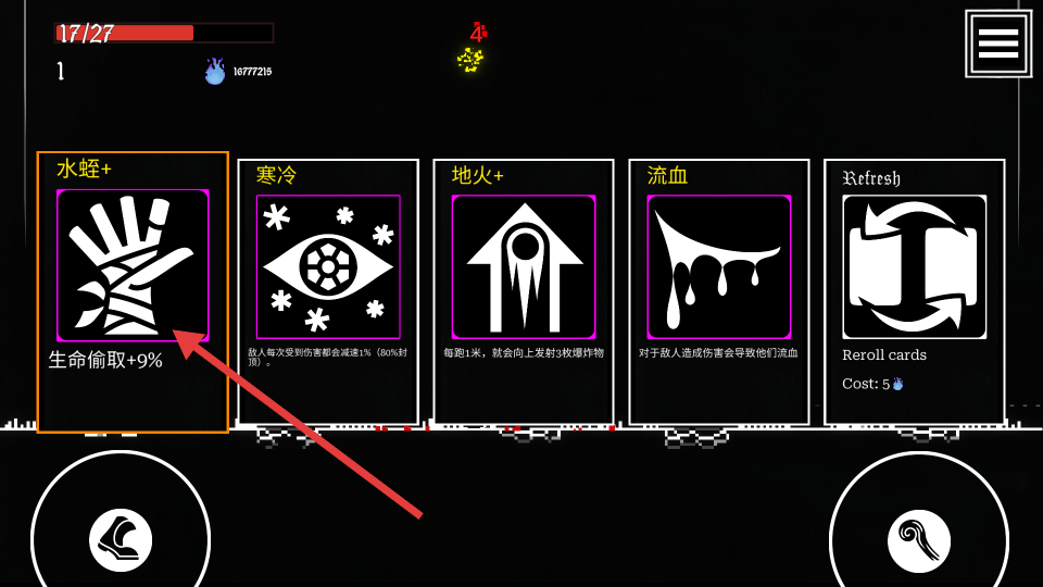 2、每过一关三选一强化技能,建议优先选能保命的。