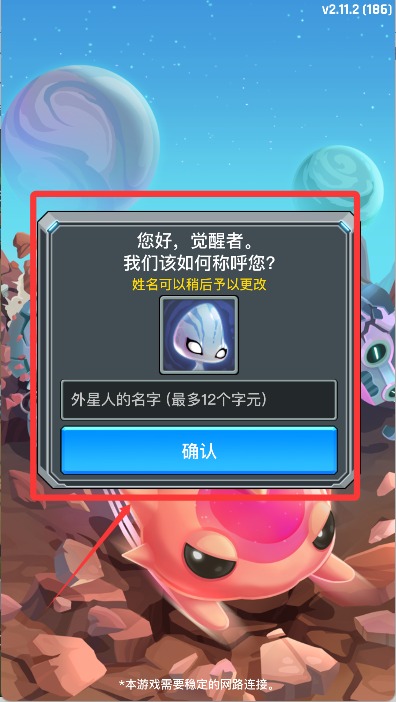 2、然后需要我们给外星人起一个喜欢的名字。