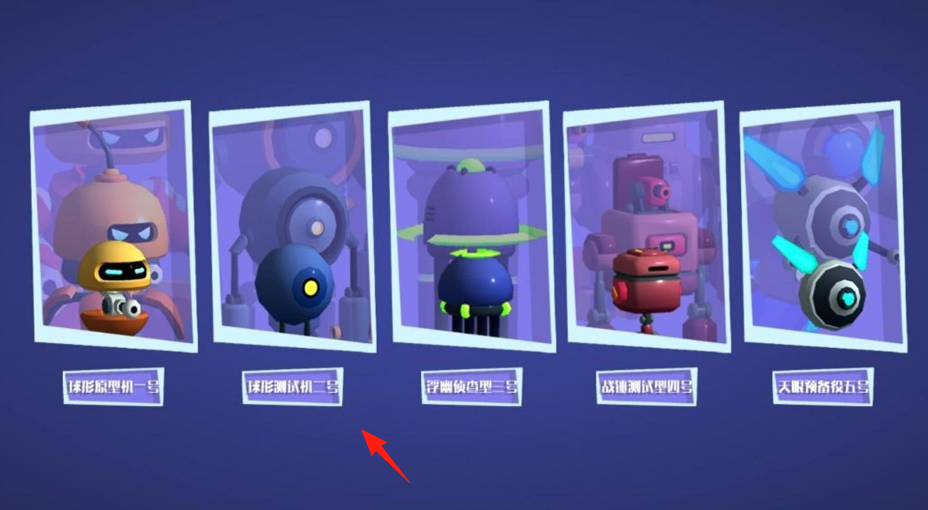 1、在机器人图鉴界面,选择箭头指向的机器人,【解锁或查看详情】,了解其技能属性。