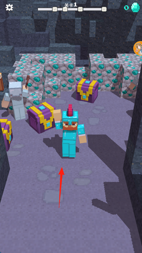 2、发现宝箱房间,沿箭头方向【靠近宝箱】,开启获取资源,提升角色能力。