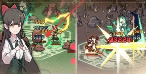 2、战斗技巧(中图):观察敌人攻击规律,适时闪避(躲“MISS”无效攻击),用技能连招(如右侧光束攻击)。