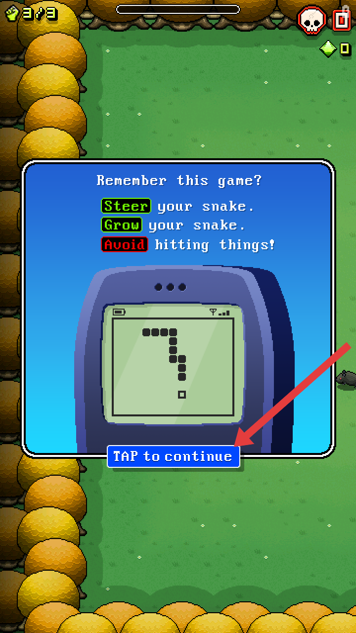 2、游戏弹出提示界面,浏览玩法说明后,点击蓝色按钮【TAP to continue】,继续推进游戏流程。