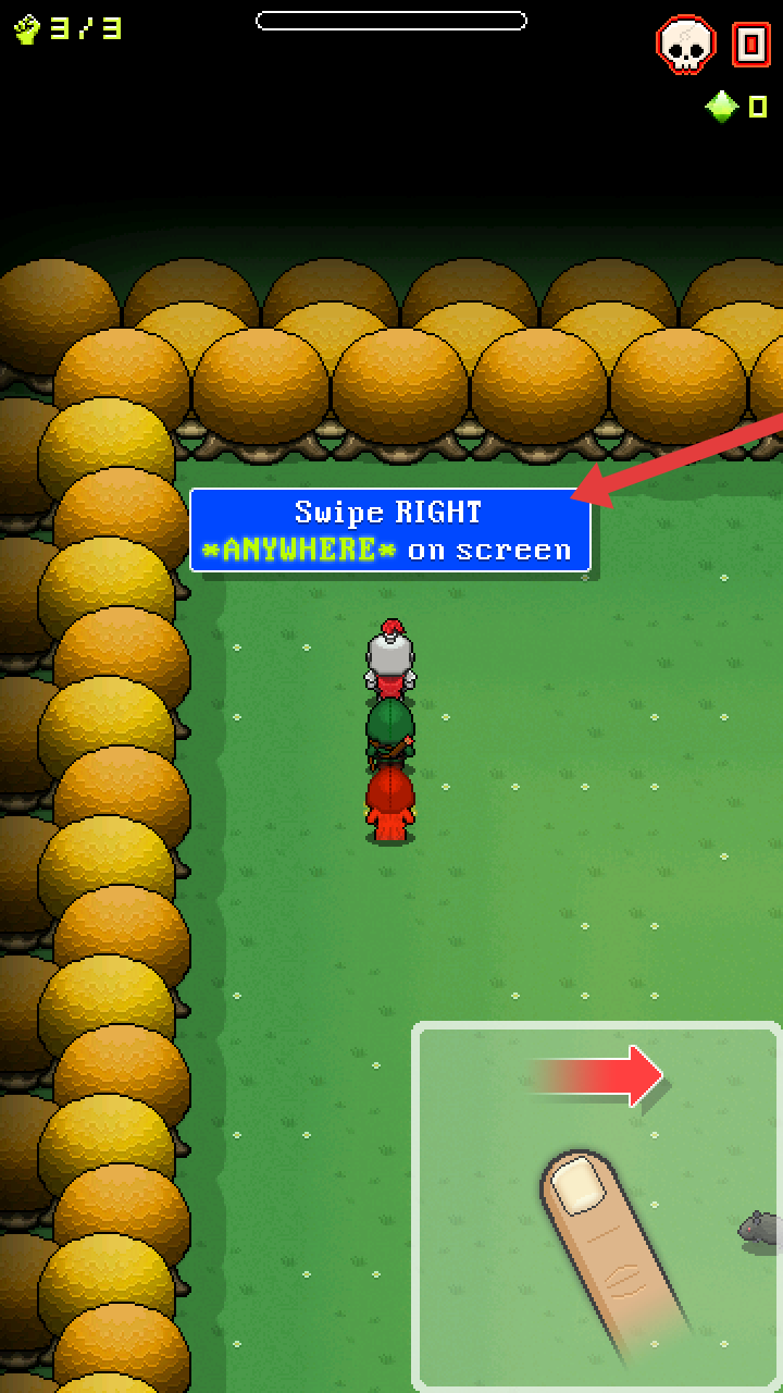 3、在游戏场景中,按照提示【Swipe RIGHT ANYWHERE on screen】,于屏幕任意位置向右滑动,操控角色队伍移动探索。