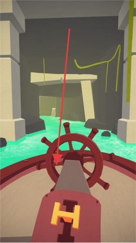 2、道具运用:地下河道场景,操控船舵(红色轮盘)调整方向,留意河道障碍、隐藏路径,利用场景道具(如漂浮物、机关)推进。