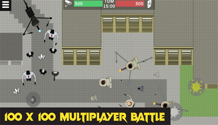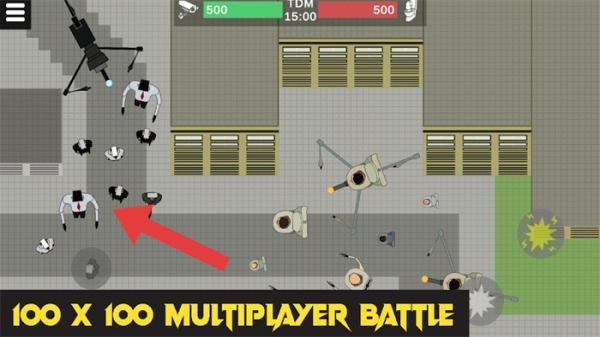 2、属于该IP衍生的多人对战,“100X100MULTIPLAYERBATTLE”表明是百人规模的多人战斗模式,围绕特色马桶人等角色展开对战互动。