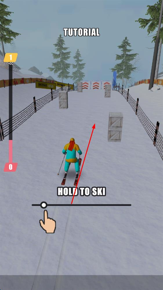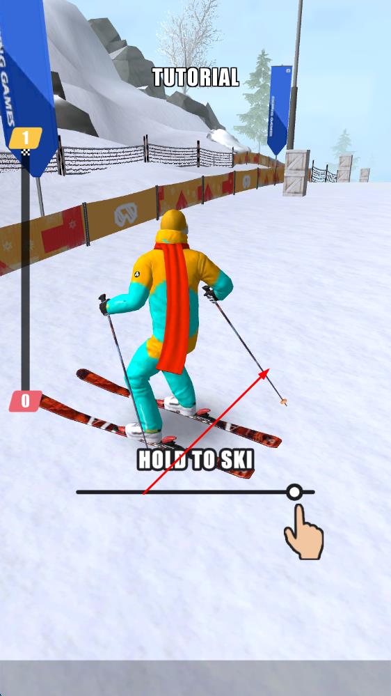 3、简洁画面质感:采用简洁大气画风,随滑行展现雪地动态效果,搭配生动音效,营造沉浸式滑雪氛围,感受运动美好。