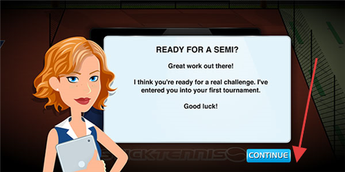 1、游戏中收到【READY FOR A SEMI?】提示,代表进入锦标赛挑战,点击【CONTINUE】,准备迎接半决赛,开启赛事征程。
