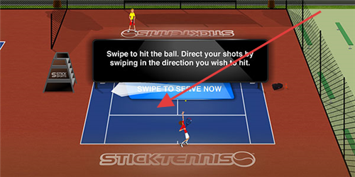 3、击球时,依据【Swipe to hit the ball.】指引,滑动屏幕控制击球方向,精准击打,提升得分几率,赢下比赛。