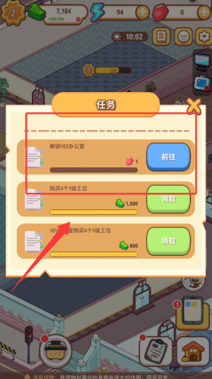 3、完成指定经营目标逐步解锁各类房型,从简易公寓到豪华别墅逐步扩展业务版图。