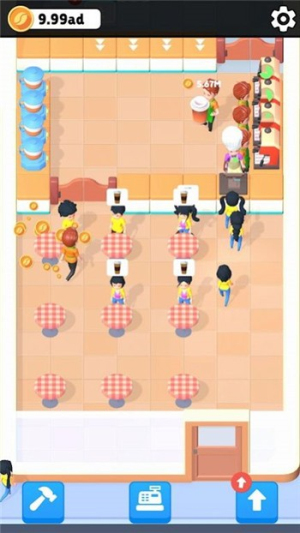 2、智能员工管理系统,根据员工特长分配岗位,通过培训提升服务效率,优秀员工可解锁特殊技能。