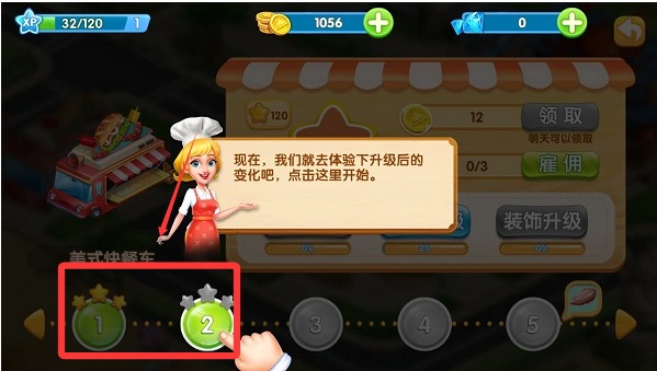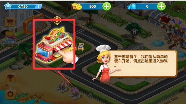 1、开局选择主店主题后,需先采集基本食材并解锁第一道甜点,依照关卡需求点击烹饪按钮,让厨师自动完成制作与装盘。