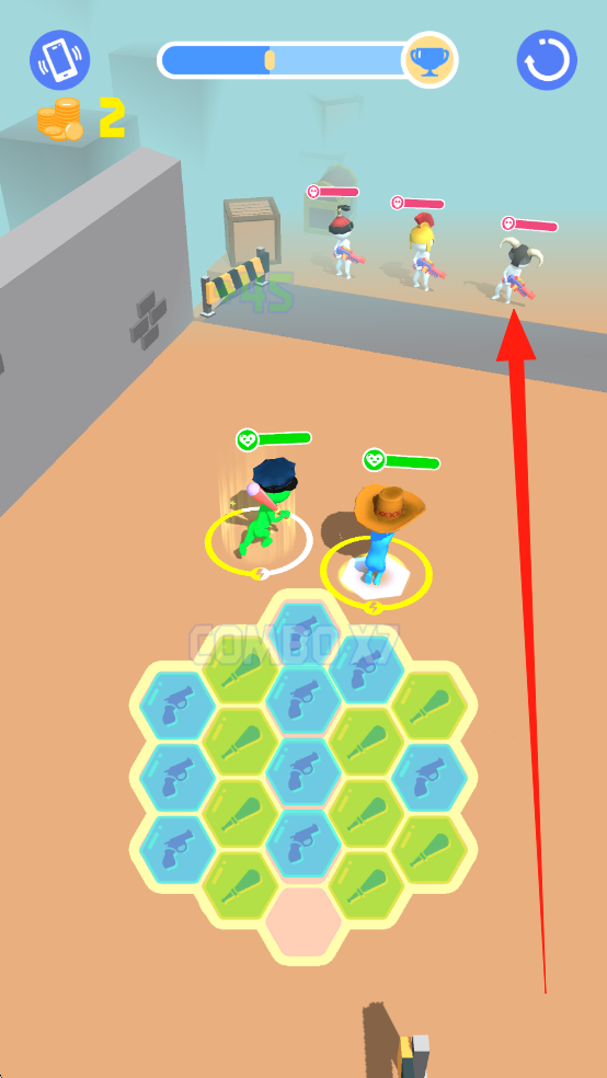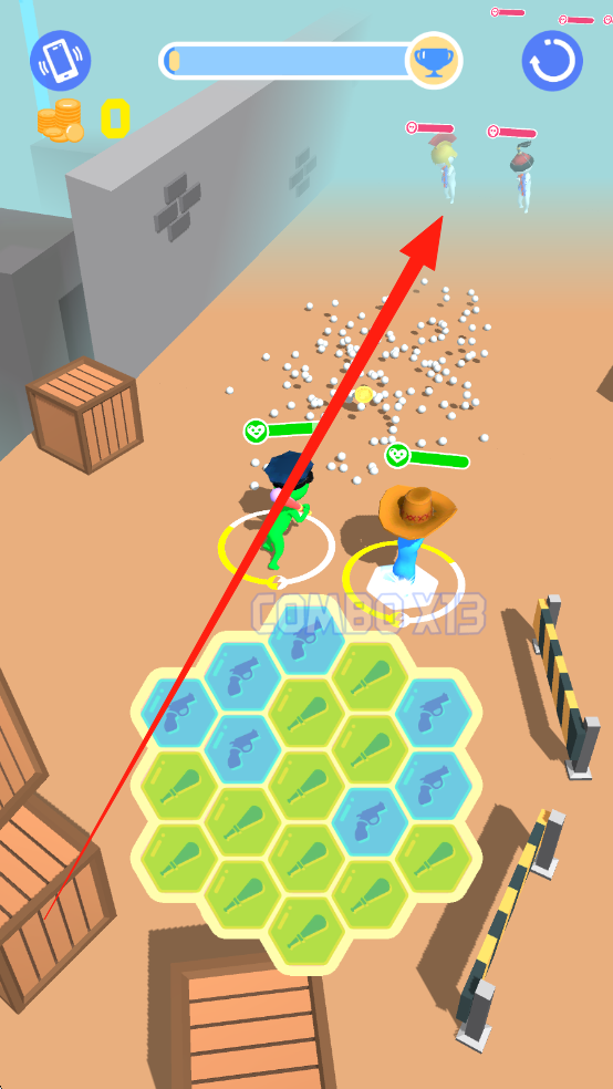 1、优先观察关卡中敌人分布与武器道具位置,预判战斗路径,通过快速点击屏幕控制角色动作,滑动调整方向。