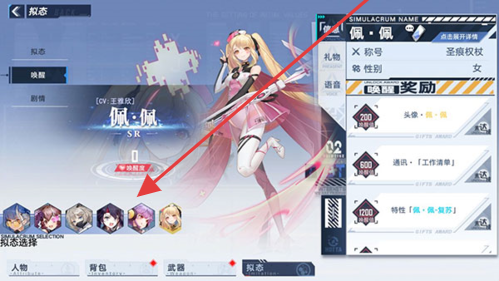 1、进入拟态界面,查看【佩·佩】信息,完成“唤醒”解锁角色,通过奖励任务(头像、通讯、特供),获取资源提升角色战力。