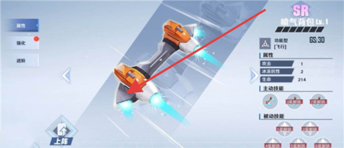 2、在武器界面,选用【喷气背包】,了解其主动、被动技能,消耗材料强化、进阶,提升武器等级(如至Lv.1及以上),增强输出。