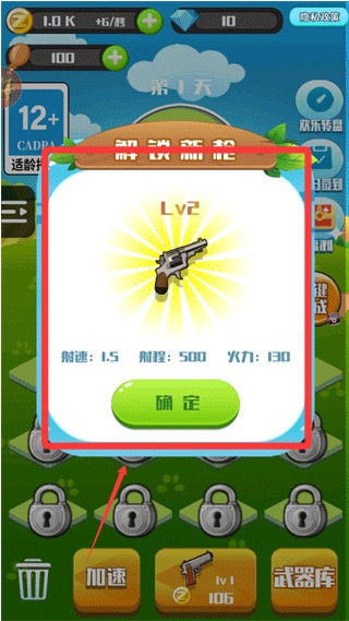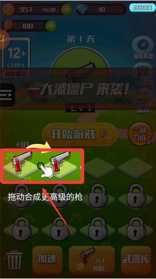 2、两个相同的枪支可以进行合成升级。