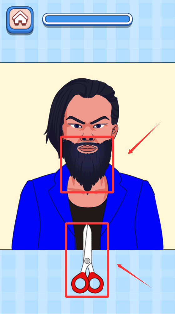 3、移动剪刀把他的胡子剪掉吧。