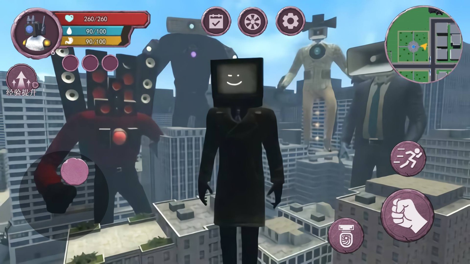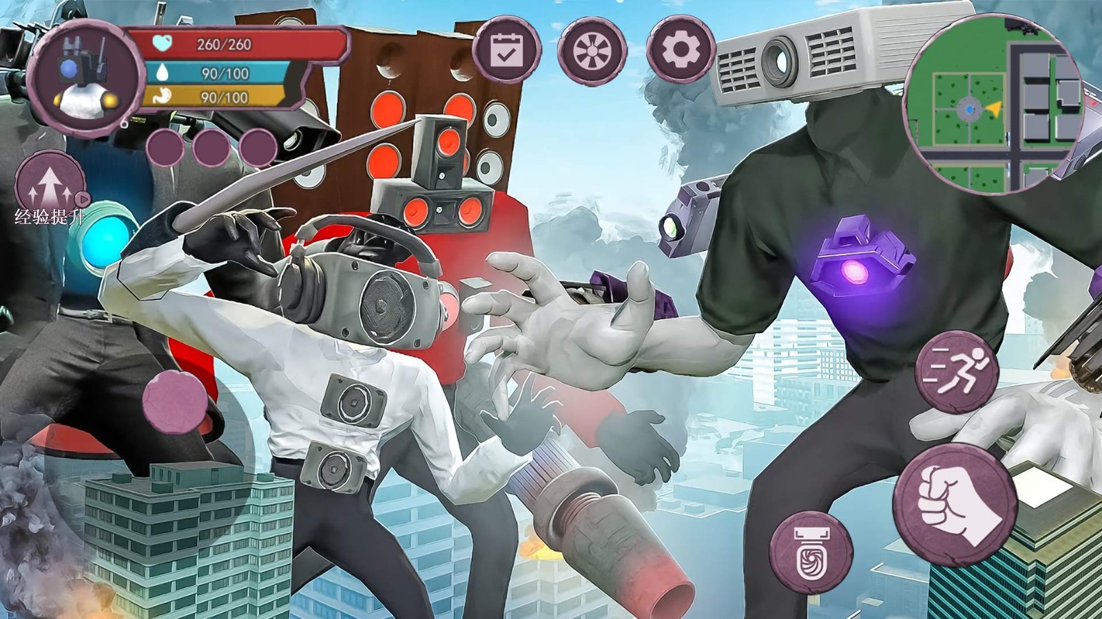 终极泰坦电视人是一款画风独特的作品,将你带入电视人与马桶人的激烈大战,它采用刺激的动作战斗方式,让你沉浸在无比惊险刺激的战斗体验中,你可以挑战各类关卡,收集装备与技能,不断提升自身能力和属性,击败场景中的BOSS,成为真正的战斗王者。