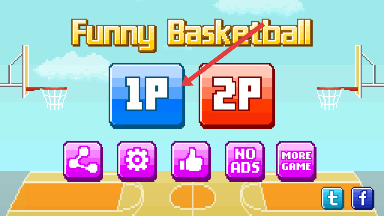 1、进入滑稽篮球的游戏主界面,操控者需要点击蓝色【1P】的按钮,选择单人模式开启游戏。