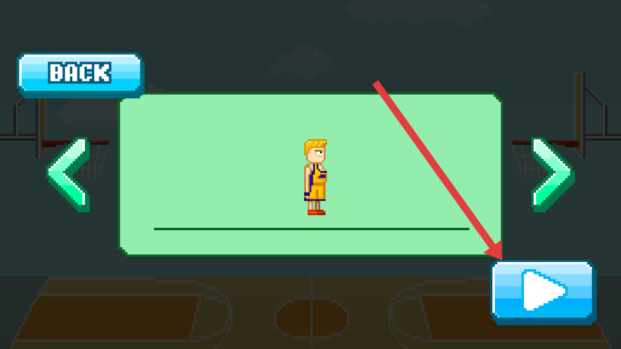 2、在滑稽篮球的角色选择界面,选定角色后,点击右下角蓝色播放按钮,进入篮球对战环节。