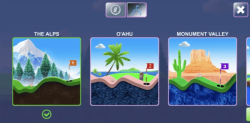 2、场地选择界面提供8种风格迥异的球场环境,从滨海球场到山地果岭自由切换。