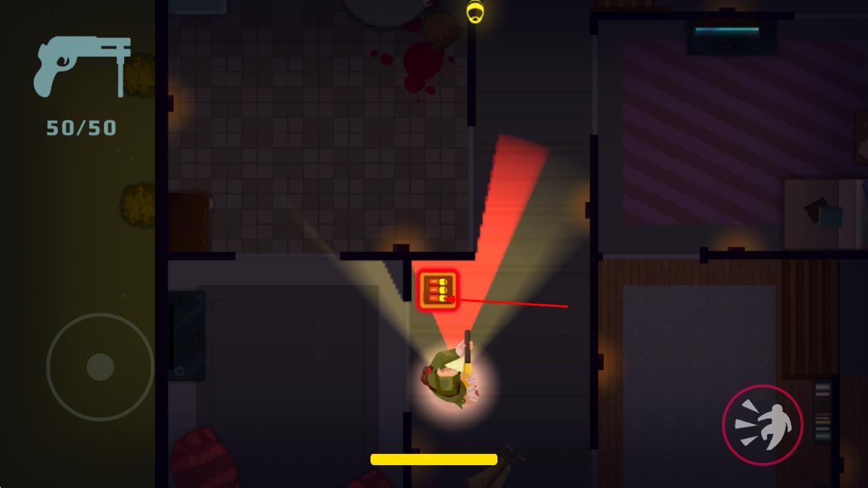 2、在关卡中滑动屏幕瞄准敌人,点击射击键倾泻火力,同时躲避激光陷阱与敌人弹幕,收集沿途弹药箱补充资源。