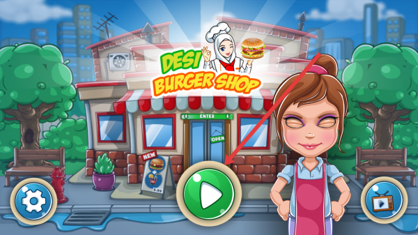 1、点击主界面绿色【播放】按钮,进入《Desi-Burger-Shop》,开启汉堡店经营,制作美食服务顾客。