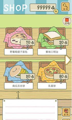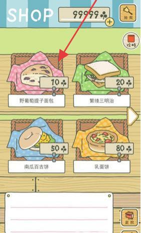 3、打开【商店】,用货币买食物(野葡萄提子面包、蜜桃三明治等),投喂月兔提升好感,助力冒险旅程。
