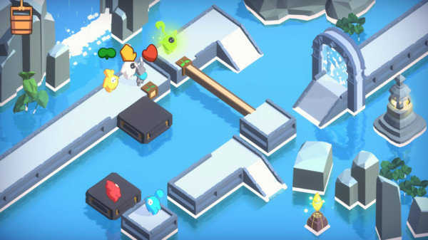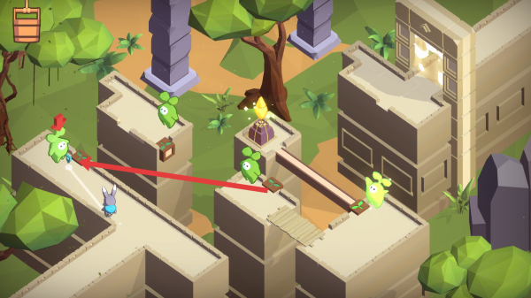 3、在关卡中,引导月兔按箭头方向,绕过绿色敌人,抵达目标点(如发光建筑),完成解谜挑战。
