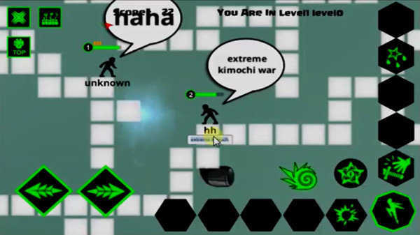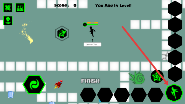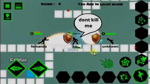 3、战斗中,点击箭头指向的技能图标,释放能力,协助火柴人突破障碍、击败敌人,抵达“FINISH”。