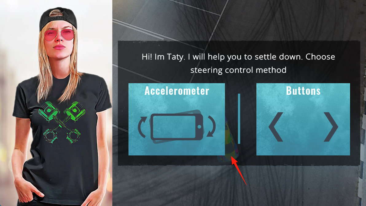 1、进入游戏初始设置,Taty引导选择操控方式,有“Accelerometer(重力感应)”和“Buttons(按键)”可选,若选重力感应,需倾斜手机控制方向;选按键则用左右箭头操作。