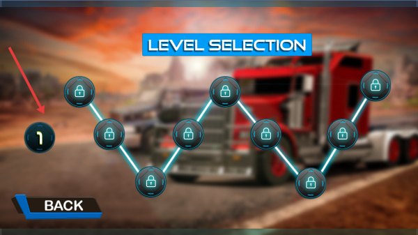 3、精准停车,完成“LEVEL1”,积累驾驶经验,解锁后续关卡,提升卡车操控技巧。