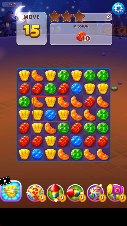 2、游玩时操控糖果完成消除任务,通过连接相同糖果图案触发爆炸效果,获取道具与高分来达成关卡目标。