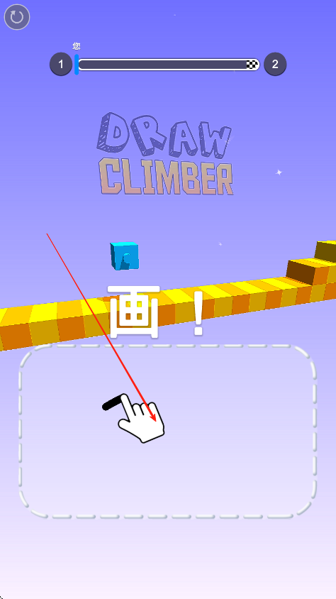 1、进入关卡后观察岩壁结构与障碍分布,用手指在屏幕绘制角色的手脚,首次绘制可先尝试三角形支撑结构,确保基础稳定性。