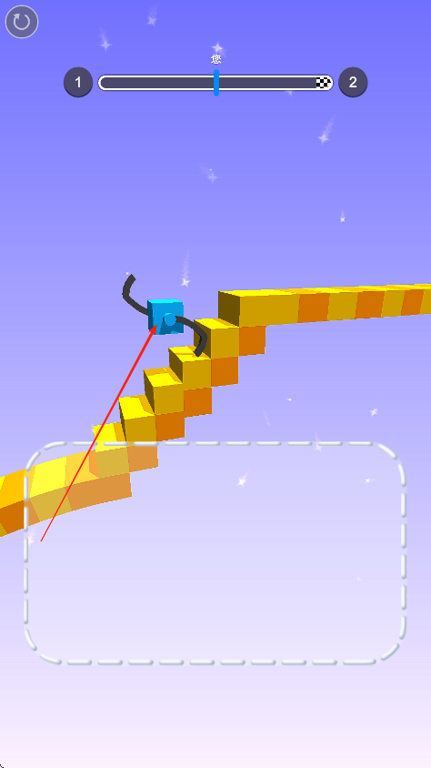 3、到达关卡终点前的关键节点,需精准计算手绘支点的受力平衡,画出稳固的攀爬路径,最终触顶即可完成挑战并解锁新画笔皮肤。