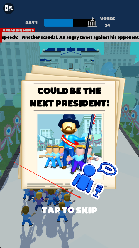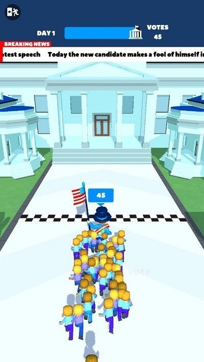 1、跑酷选举融合:创新结合跑酷收集与选举拉票元素,用队伍规模决定障碍突破能力,选票数量影响竞选结果,兼具跑酷刺激与策略规划。